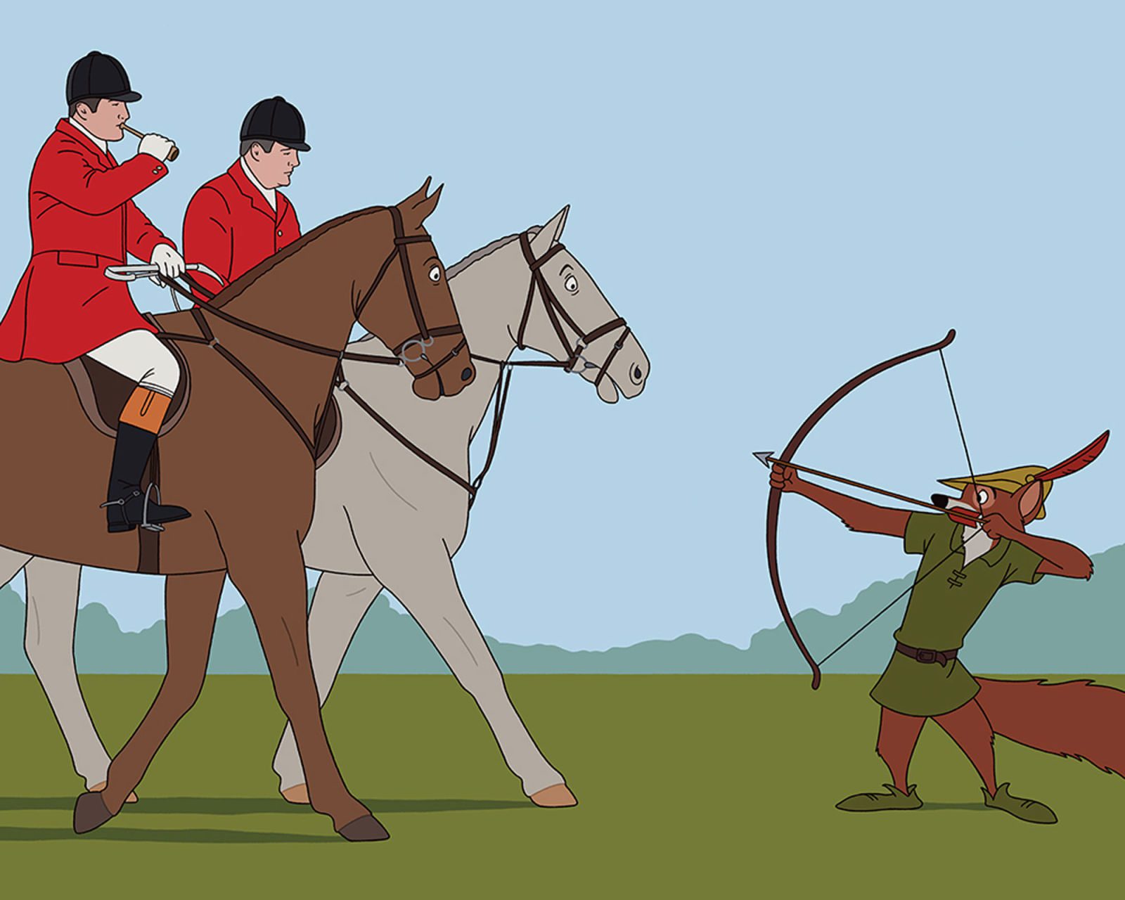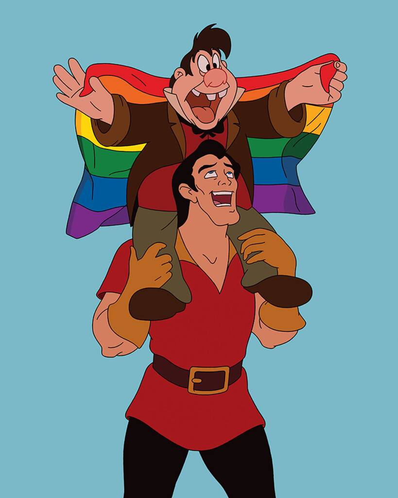 作者认为在这组插画里,他最喜欢的就是下面这幅,这是其中唯一一张具有某种正面意义的插画。来自《美女与野兽》的加斯顿和来福。