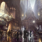蒸汽、铁轨、巨大的转轮、繁忙的列车 和高耸入云的精致建筑,展现着这世界的魅力,无数形态各异的机器人在我身边来往和交流,就像我来自的那个世界一样,似曾相识。